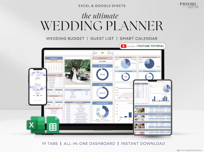 Wedding Planning Spreadsheet Wedding Budget Tracker Wedding Timeline Checklist Guest List Tracker Wedding Itinerary Seating Arrangement Wedding Gifts Wedding Planning Template Wedding Tracking Spreadsheet Bride’s Wedding Gifts Wedding Budge
