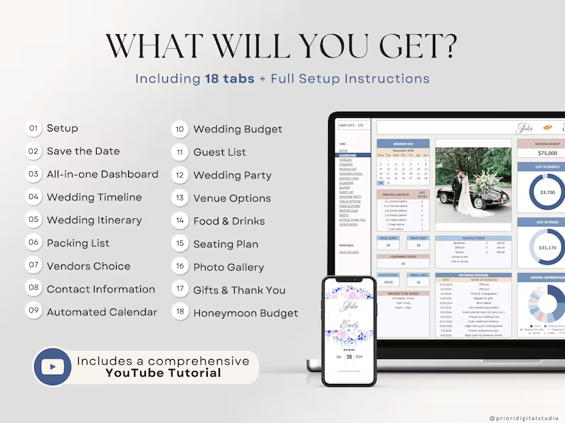 💻 This wedding planning spreadsheet includes 18 tabs + complete setup instructions: